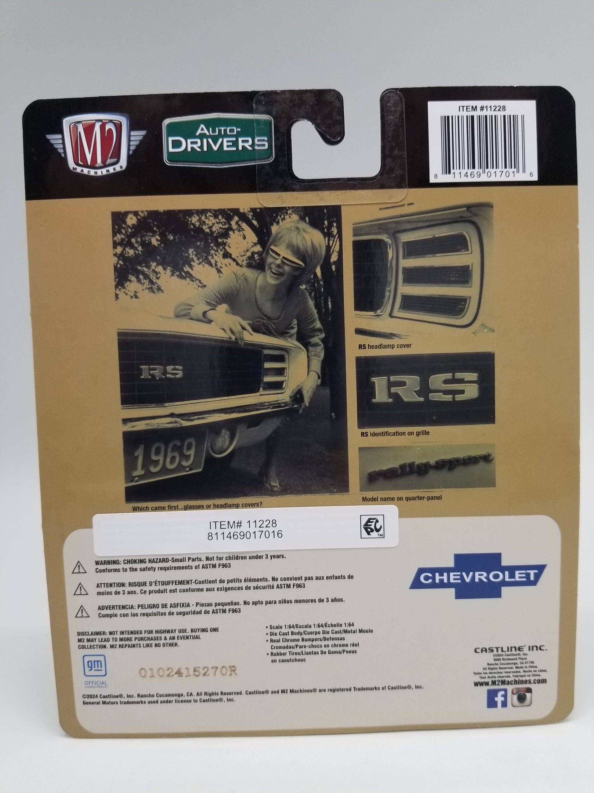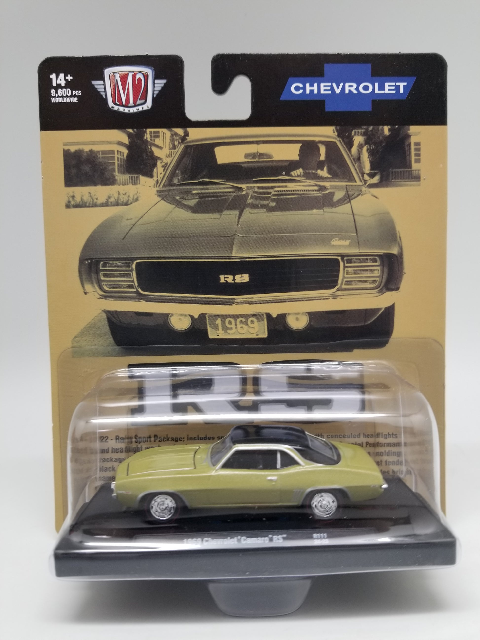 M2 1969 Chevrolet Camaro RS new in package, 1:64 scale.