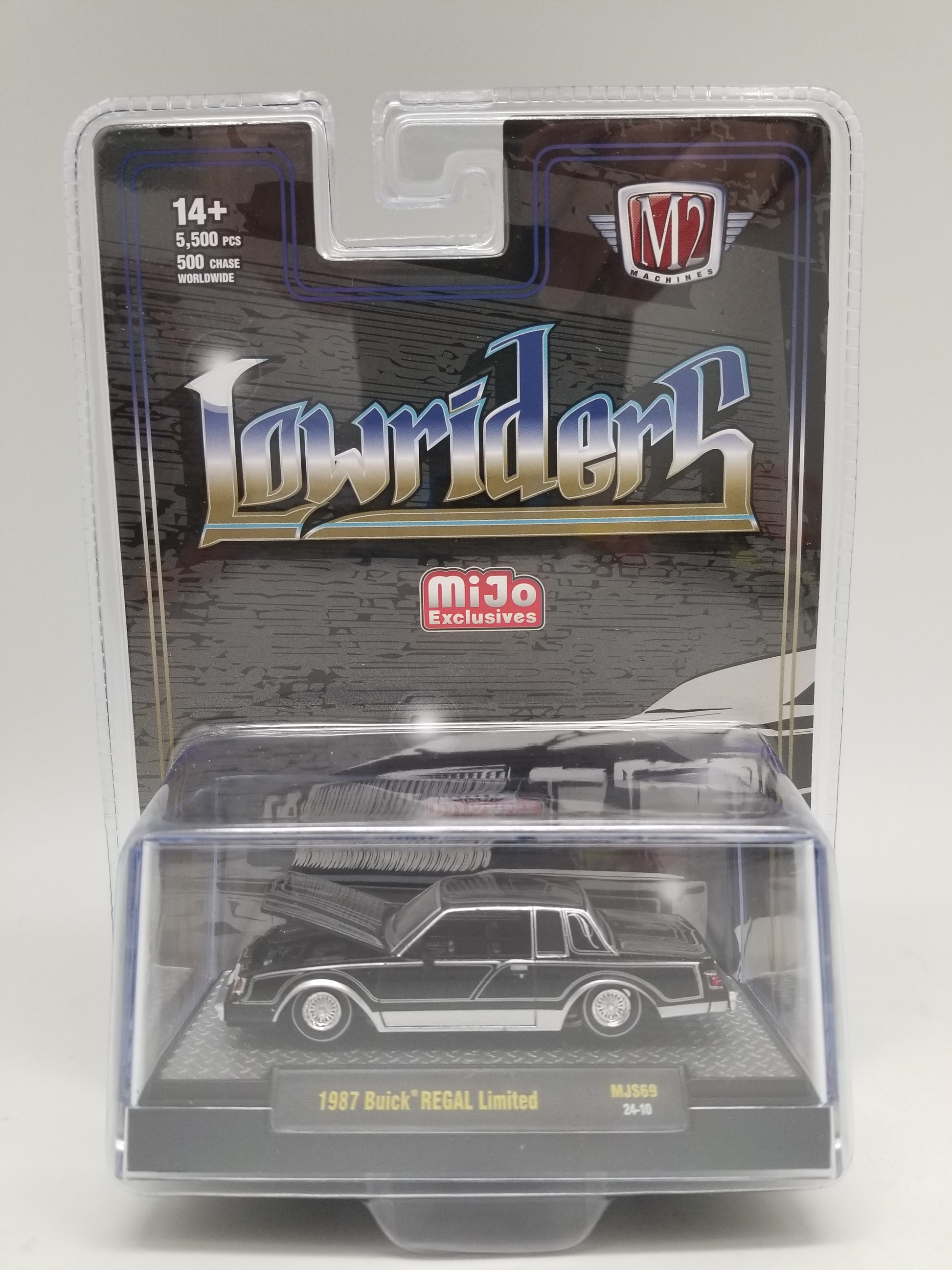 M2 1987 Buick Regal Lowriders - Black - MiJo Exclusive. New in package, 1:64 scale.