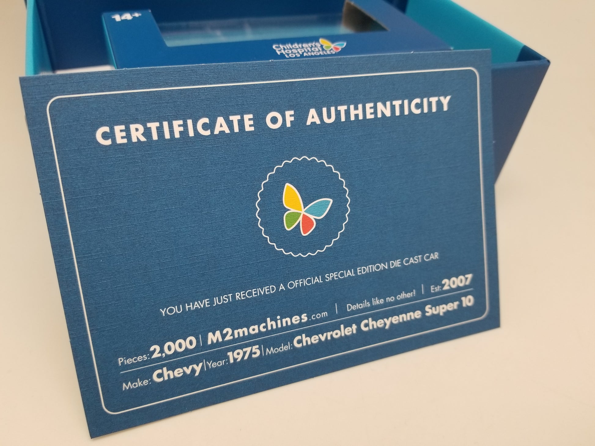 M2 1975 Chevrolet Cheyenne Super 10 - CHLA Charity Truck. New in package and includes the outer box, 1:64 scale. ONLY 2000 Made