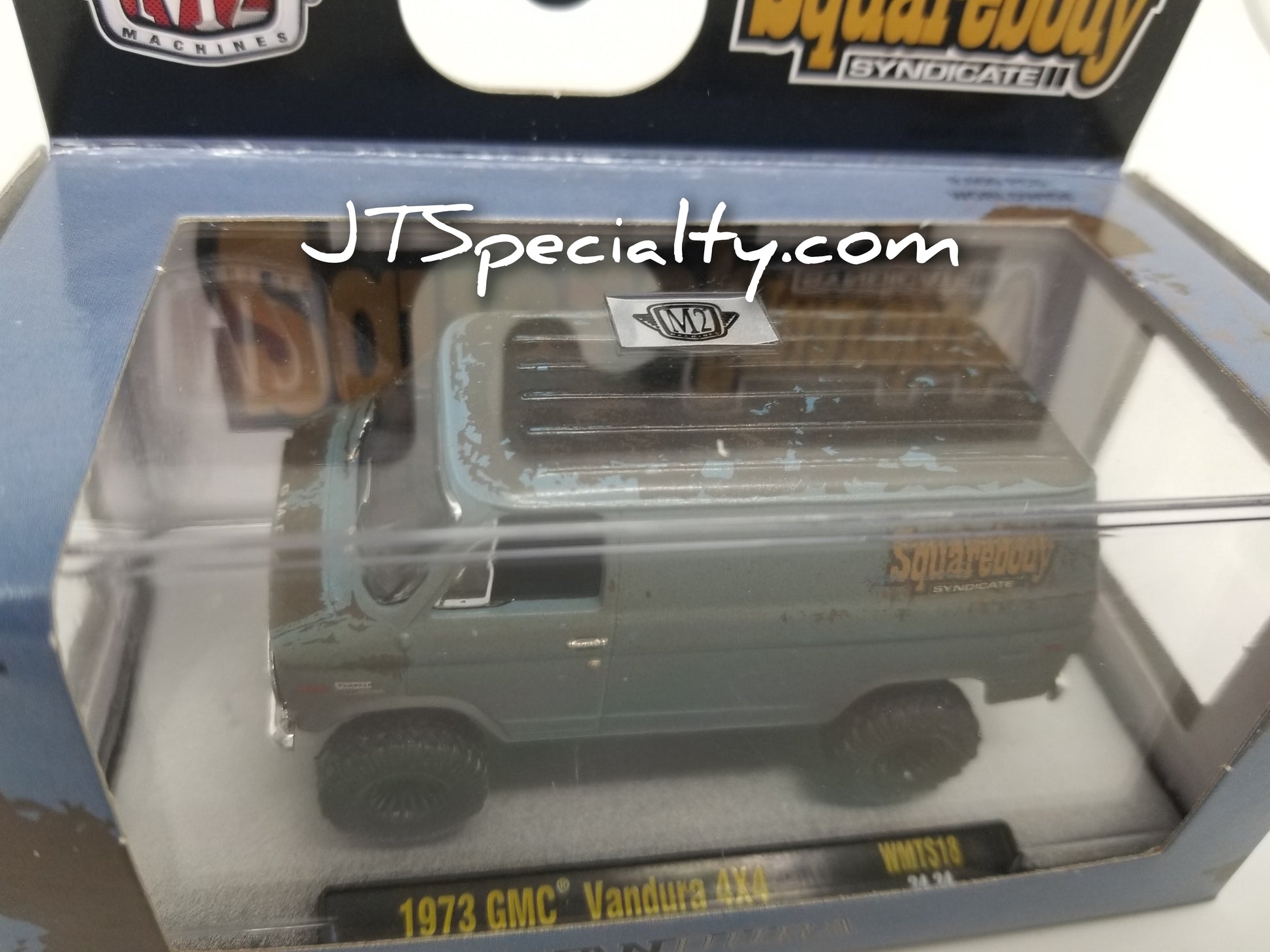 M2 1973 GMC Vandura 4x4 from Squarebody Syndicate., Dirty Black wheel variant box damage - See pics. 1:64 scale. Walmart exclusive.