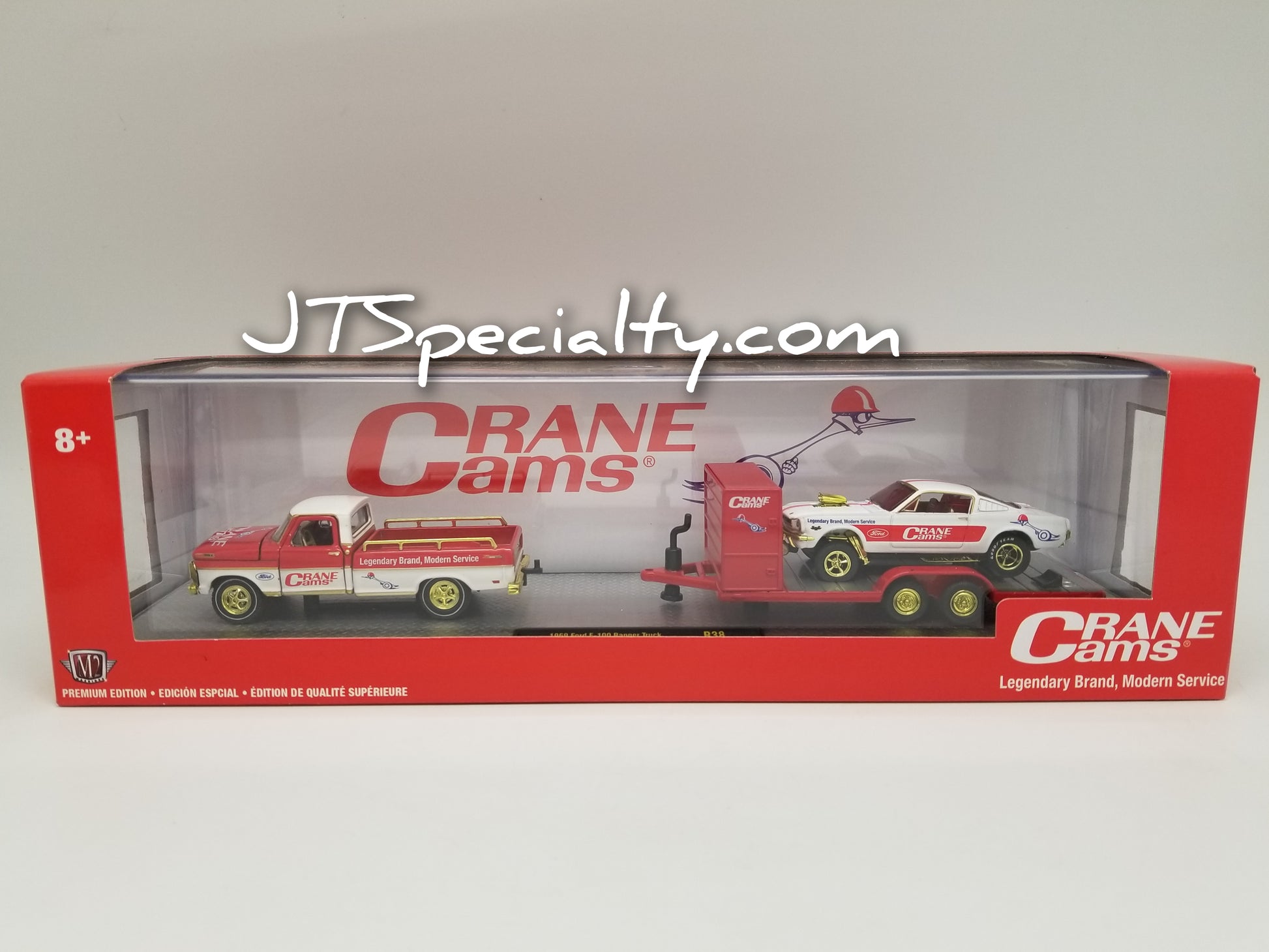 **1 of 750** M2 CHASE 1969 Ford F-100 Ranger Truck & 1966 Ford Mustang Gasser - Crane Cams - Auto Hauler new in package, 1:64 scale.