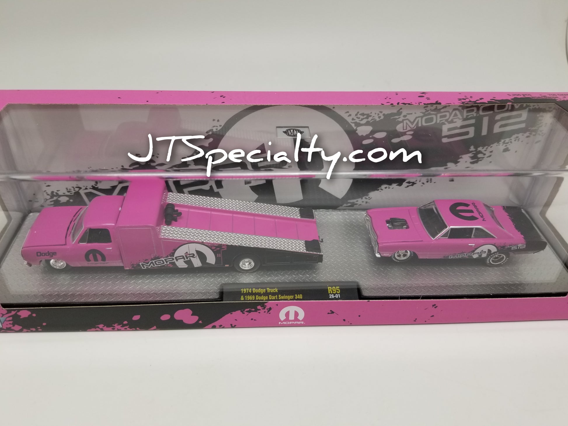 M2 1974 Dodge Truck & 1969 Dodge Dart Swinger 340 - Auto Hauler new in package, 1:64 scale.