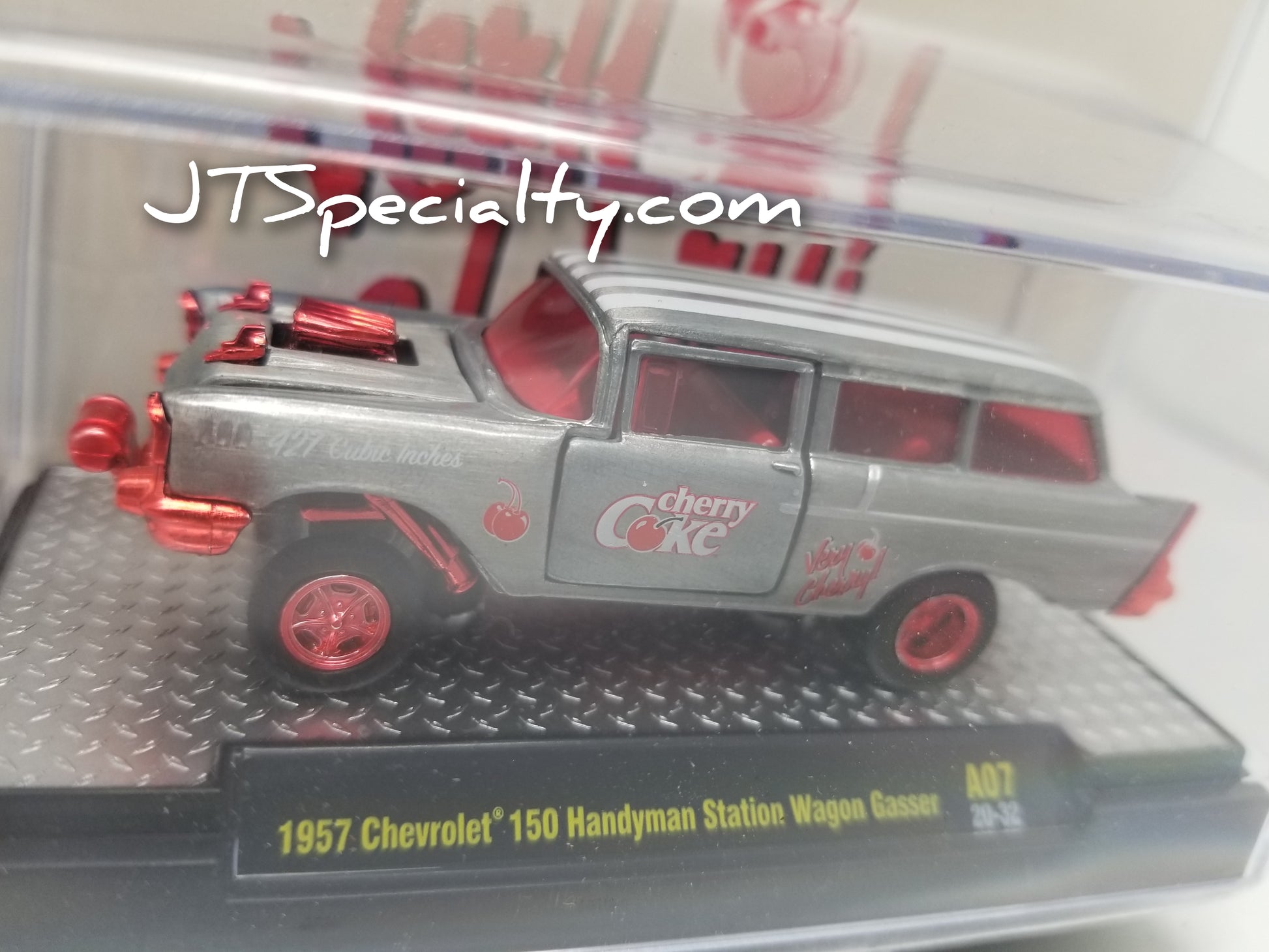 **1 of 250** M2 RAW SUPER 1957 Chevrolet 150 Handyman Station Wagon Gasser - Cherry Coke new in package, 1:64 scale.