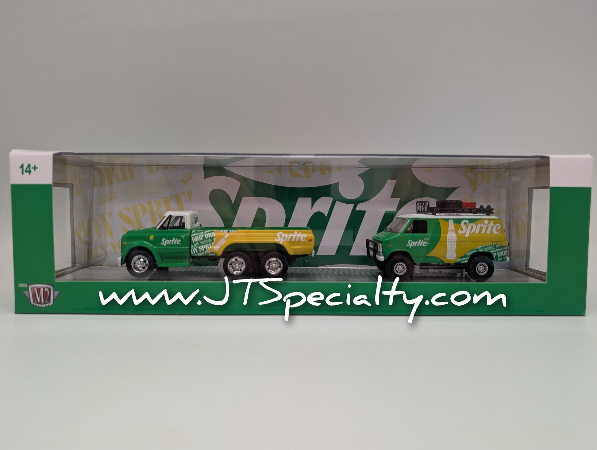 M2 1970 Chevrolet C60 Truck Custom with a 1971 Chevrolet Van G10 4X4 - Sprite Auto Hauler. New in package, 1:64 scale.
