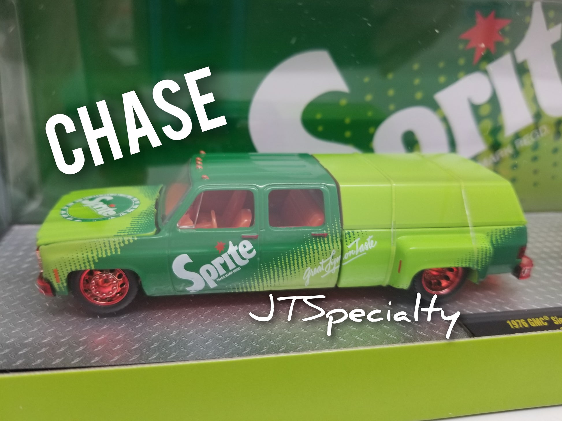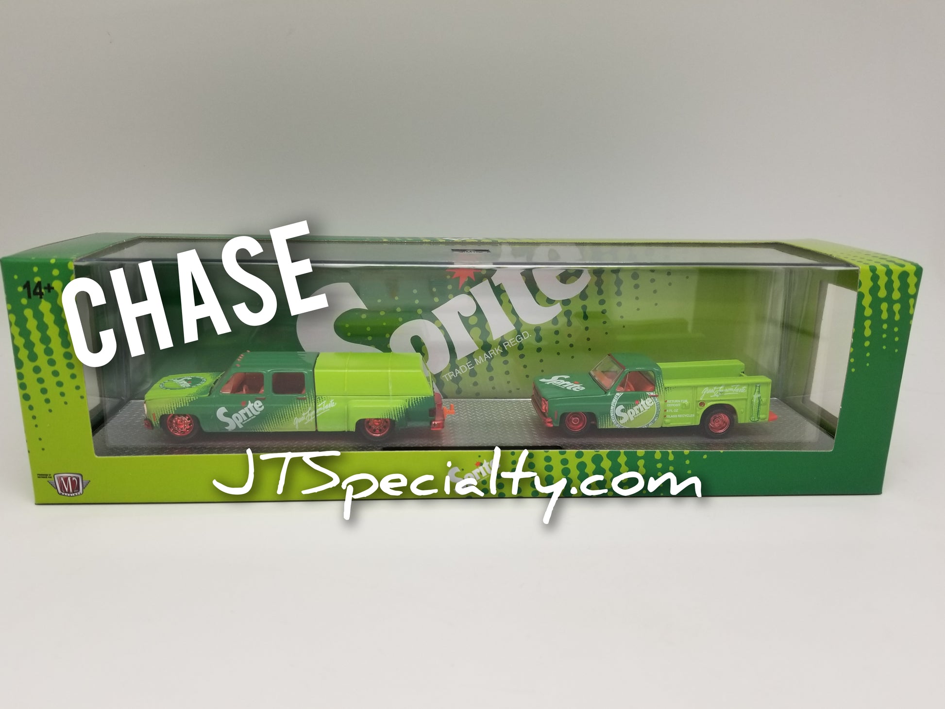 **1 of 750** M2 CHASE 1976 GMC Sierra 3500 & 1975 GMC Sierra Grande 15 - Sprite Auto Hauler. New in package, 1:64 scale.