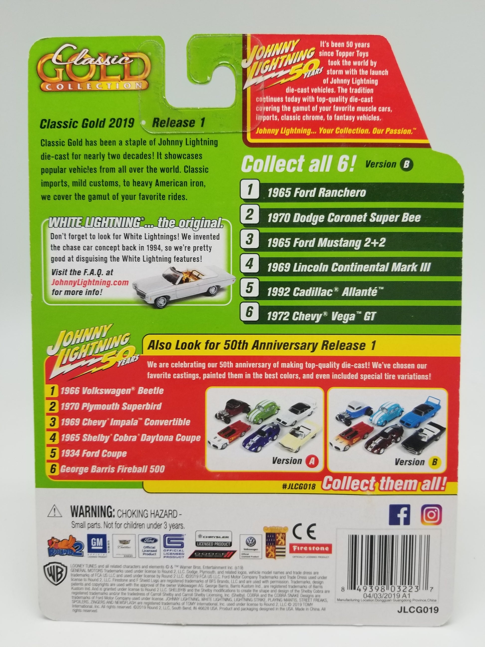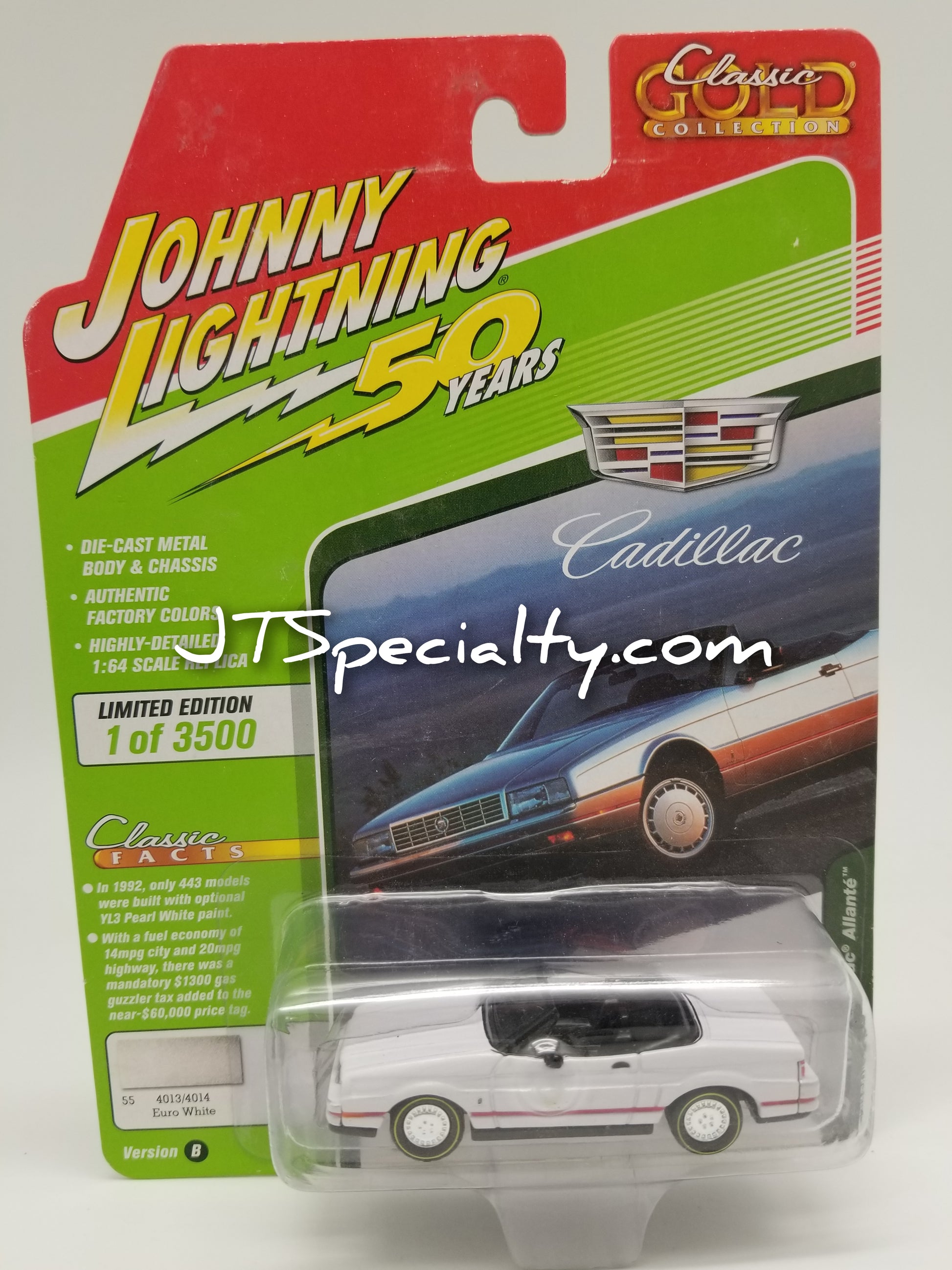 Johnny Lightning 1992 Cadillac Allante - Euro White - Classic Gold. New in package, 1:64 scale.
