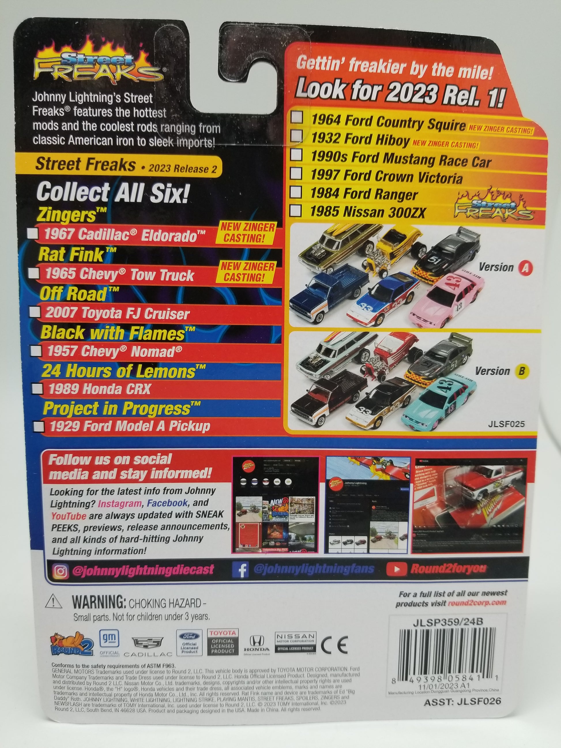 JL Street Freaks ZINGERS! 1967 Cadillac Eldorado (Zingers) (Pearl White Upper Body w/Gloss Black). New in package, 1:64 scale.