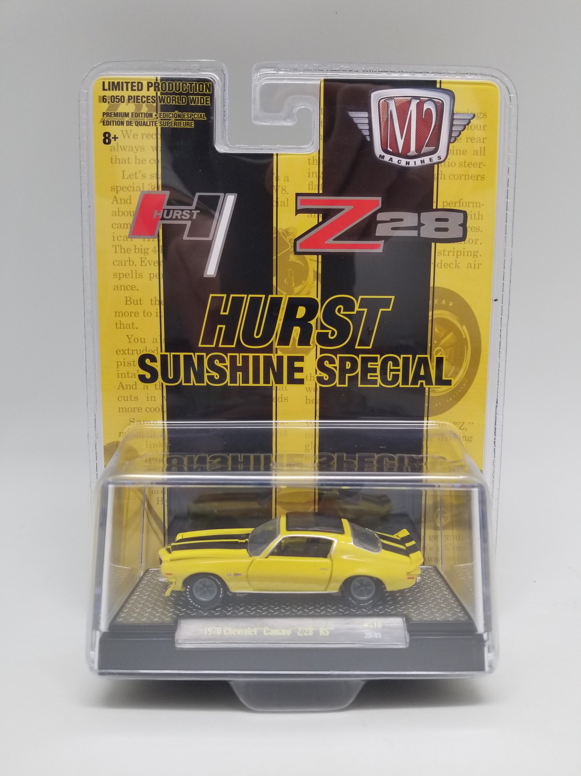M2 1970 Chevrolet Camaro Z/28 RS - Hurst Sunshine Special new in package, 1:64 scale.