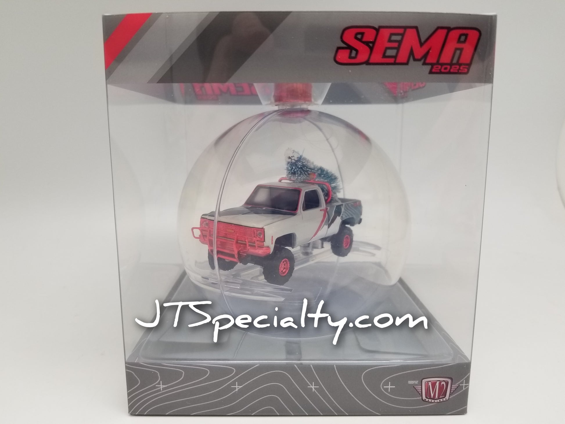 **1 of 1000** LIMIT ONE PER CUSTOMER M2 1973 Chevrolet Cheyenne Super 10 4x4 - SEMA 2025 Christmas Ornament- New in package, 1:64 scale.