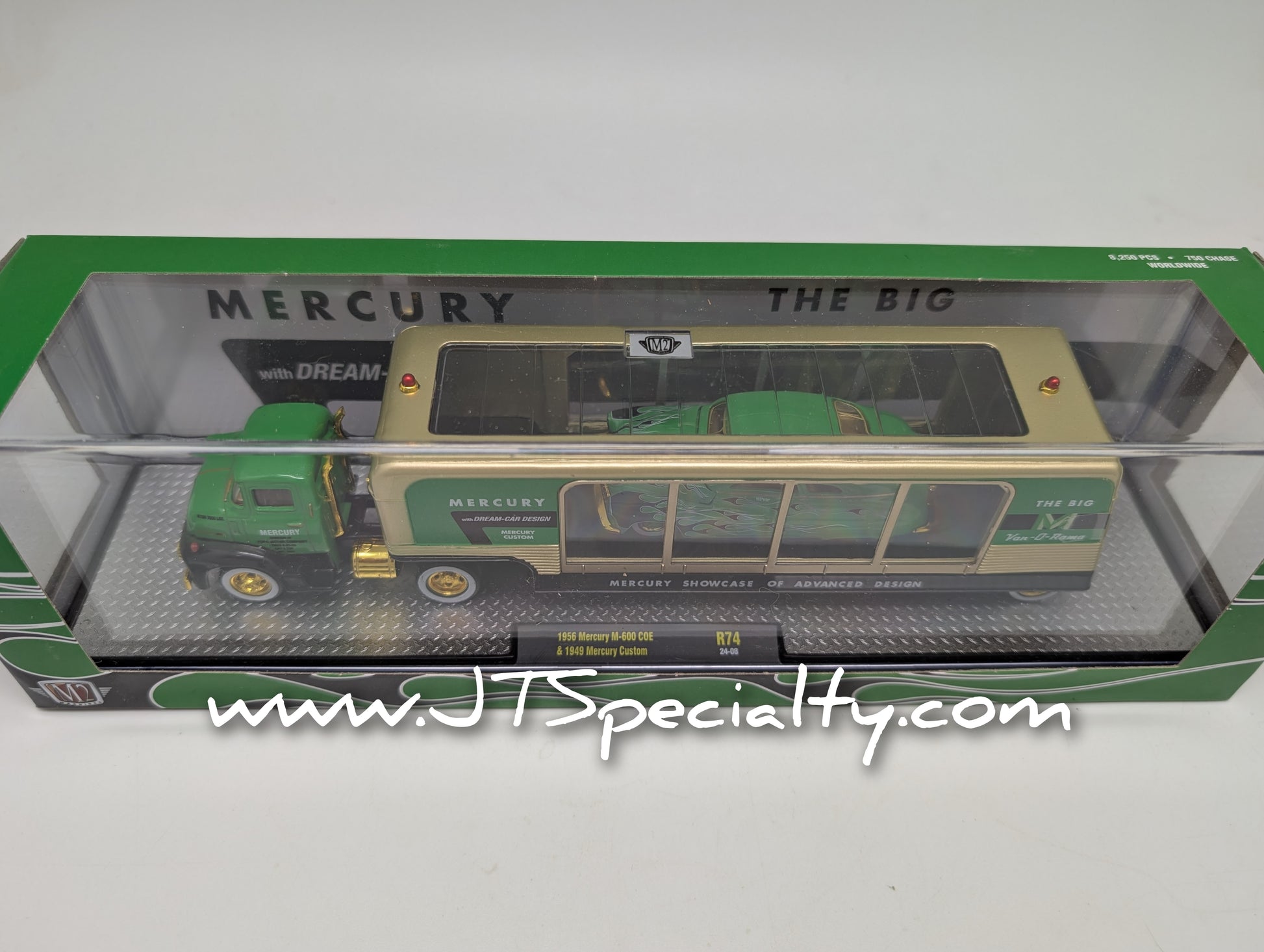 **1 of 750** M2 CHASE 1956 Mercury M-600 COE & 1949 Mercury Custom Auto Hauler new in package, 1:64 scale.