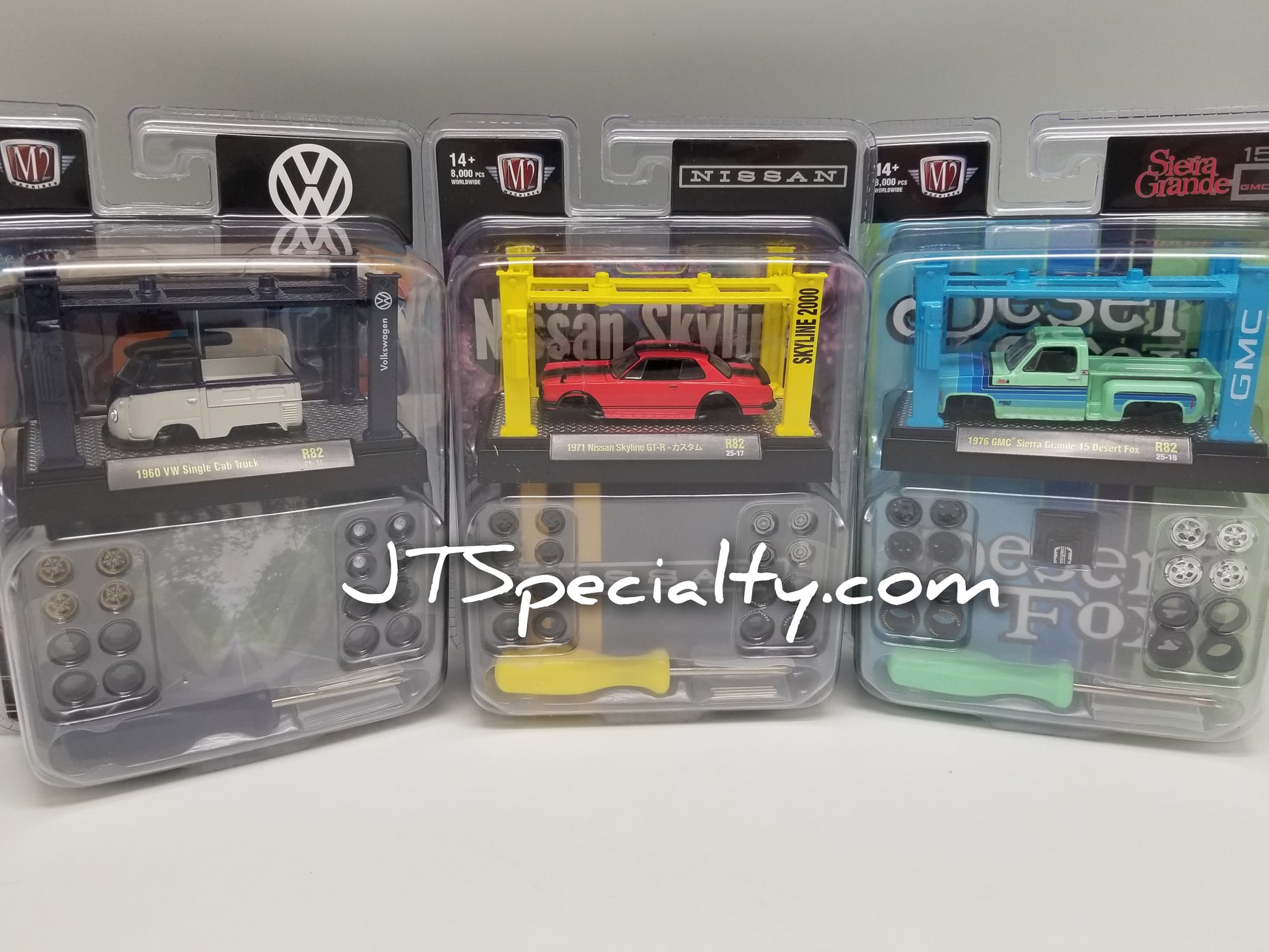 ONE of each: 1960 VW Single Cab Truck, 1971 Nissan Skyline GT-R, 1976 GMC Sierra Grande 15 Desert Fox