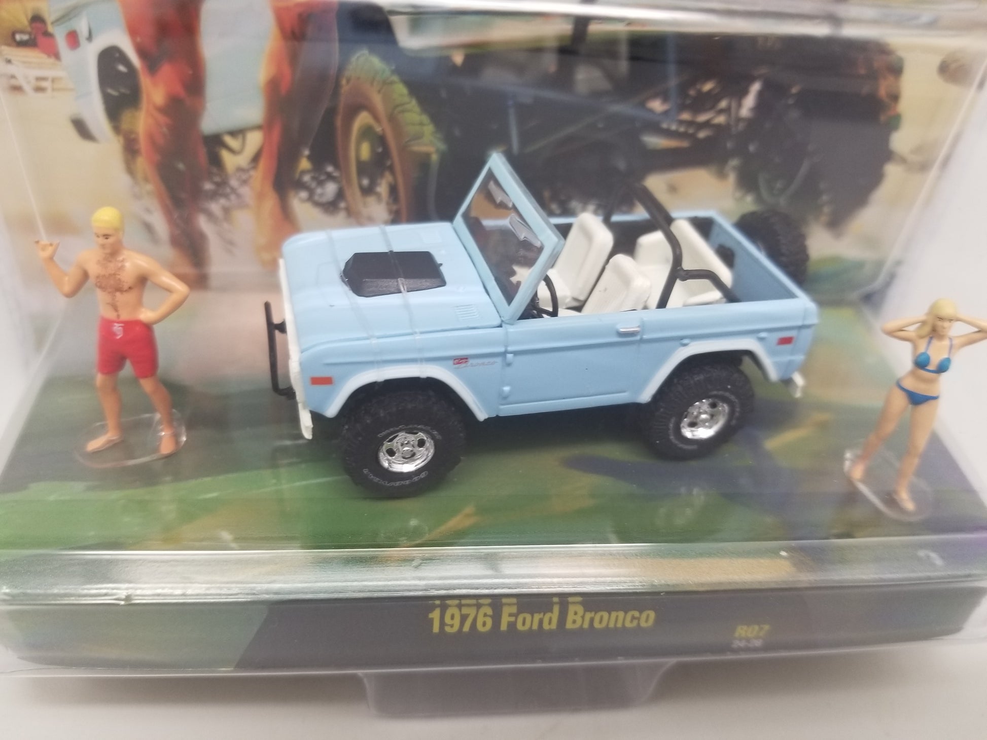 M2 Auto-Figs 1976 Ford Bronco. Diorama with Metal figures shown, New in package, 1:64 scale.