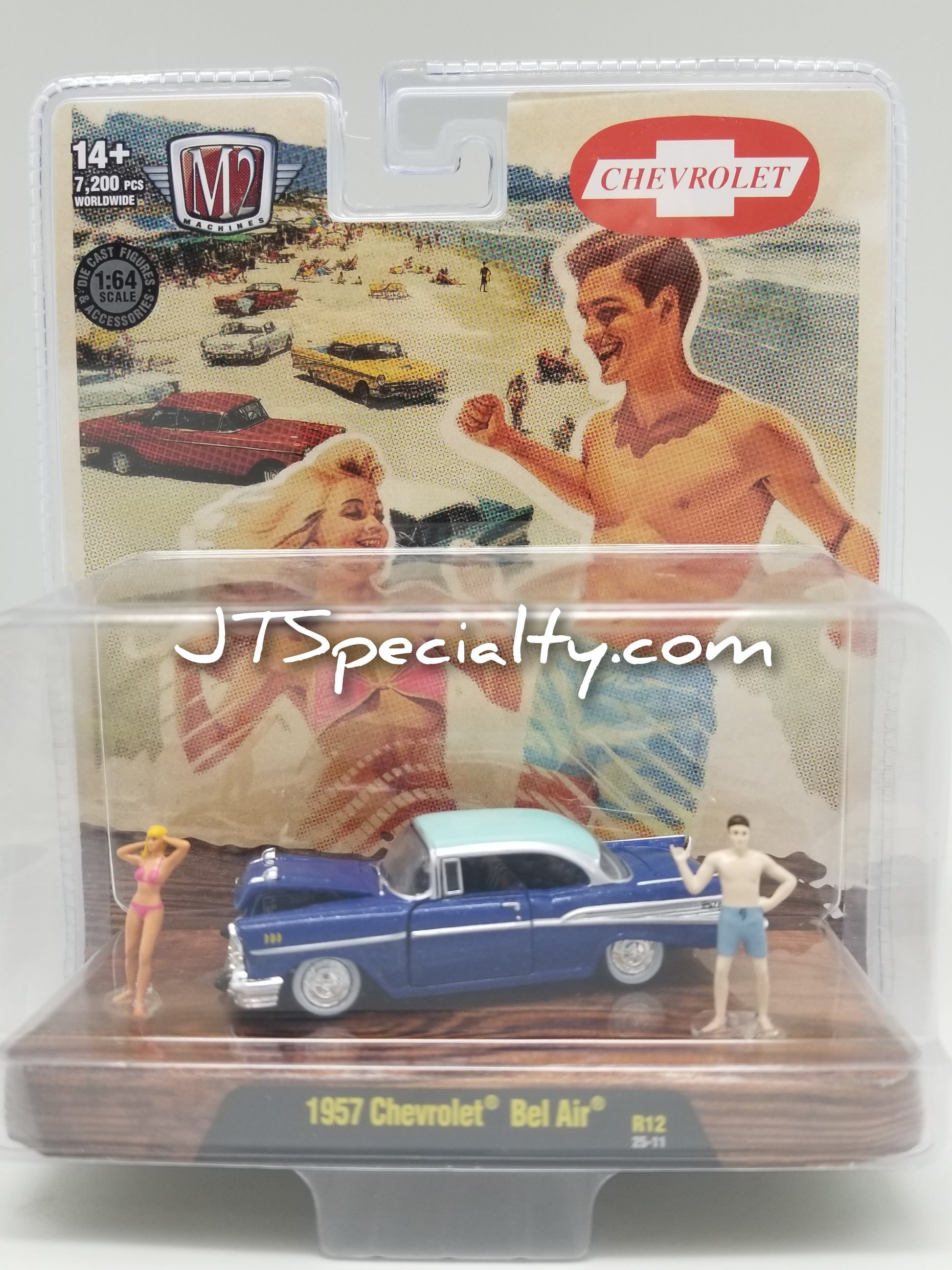 M2 1957 Chevrolet Bel Air - Auto-Figs. Diorama with Metal figures shown, New in package, 1:64 scale.