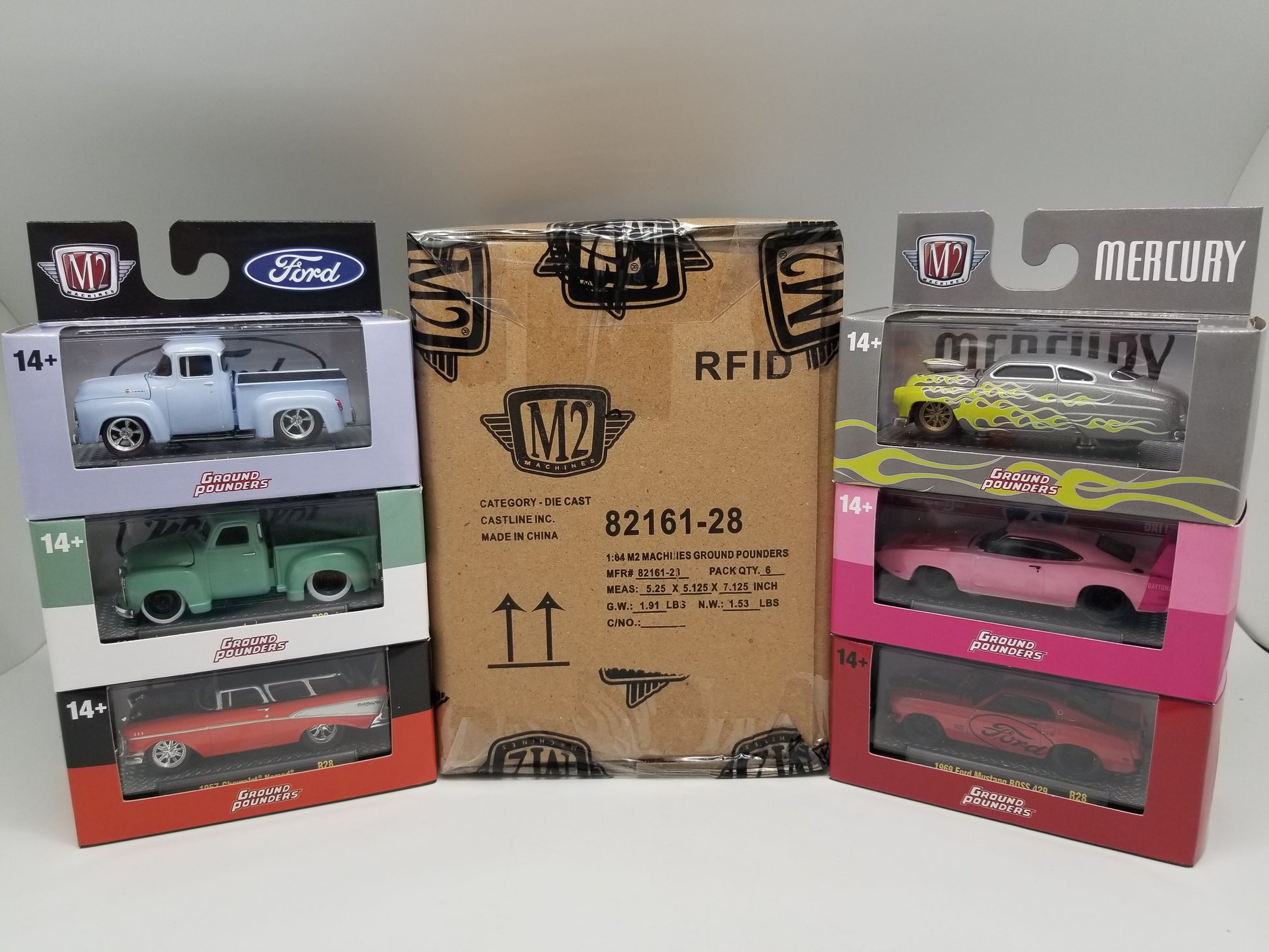Set of 6 includes 1 each: - SETS SOLD AS-IS - 1949 Mercury, 1953 Chevrolet 3100 Truck, 1956 Ford F100 Truck, 1957 Chevrolet Nomad (Potential Chase or Super Chase), 1969 Dodge Charger Daytona HEMI, 1969 Ford Mustang BOSS 429