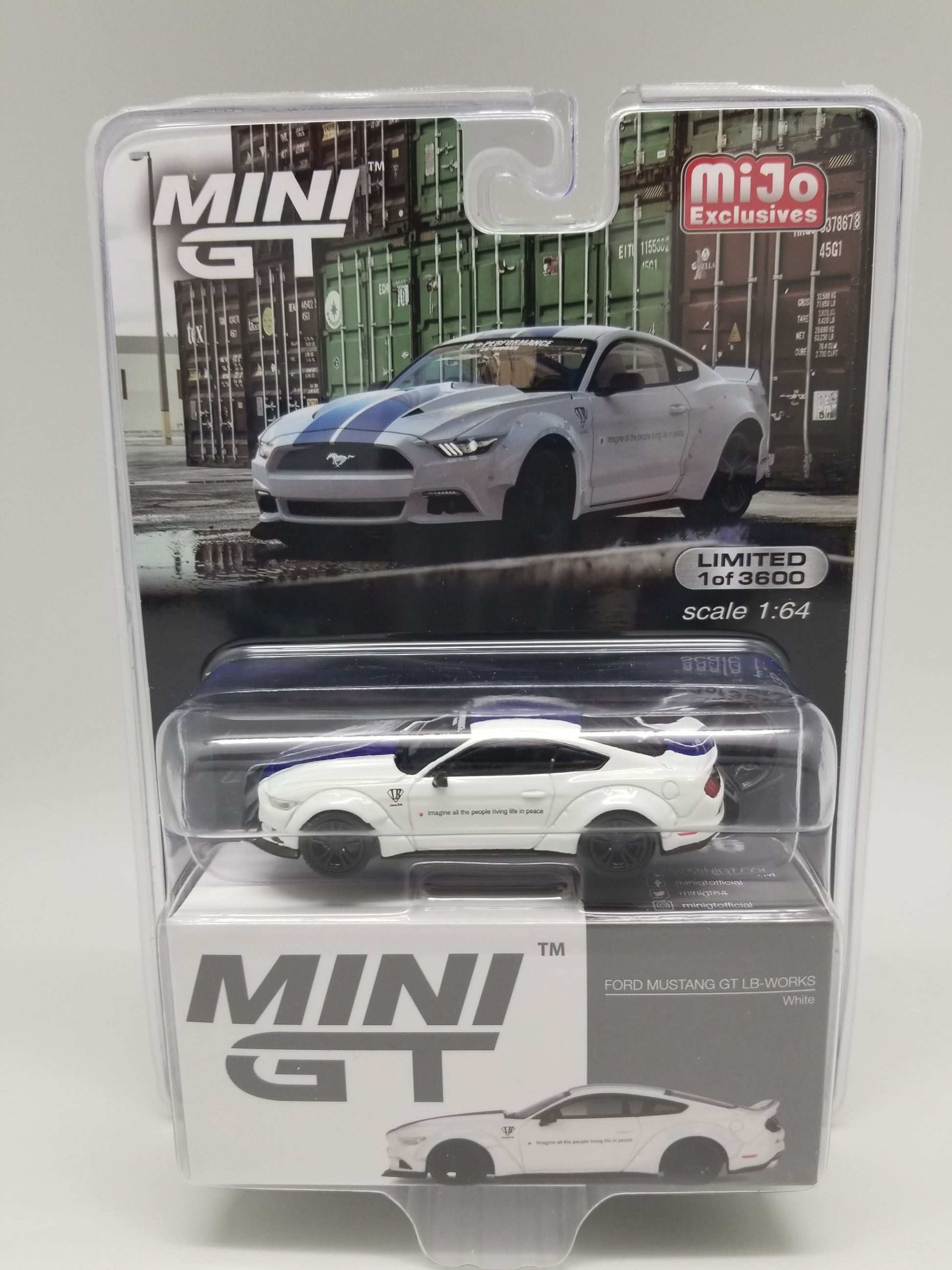 Mini GT 0646 - LB Works Ford Mustang GT - White/Blue. New in package, 1:64 scale.