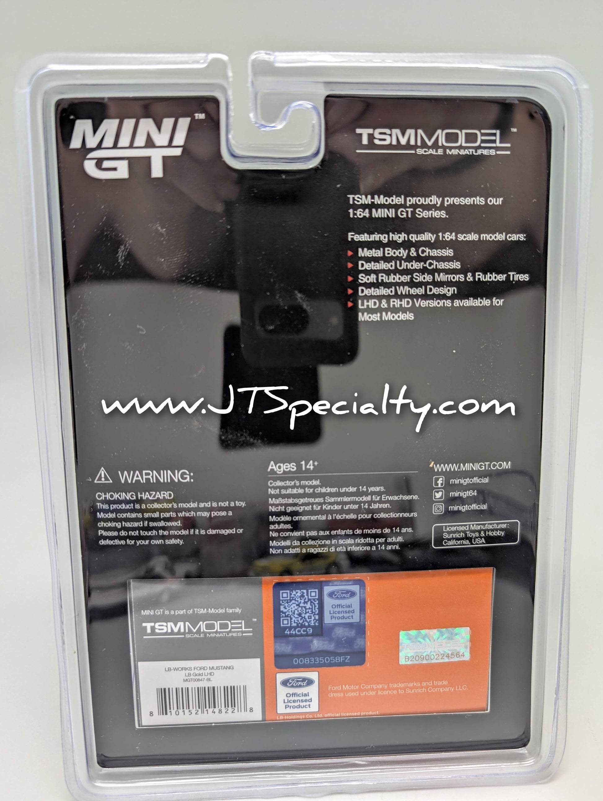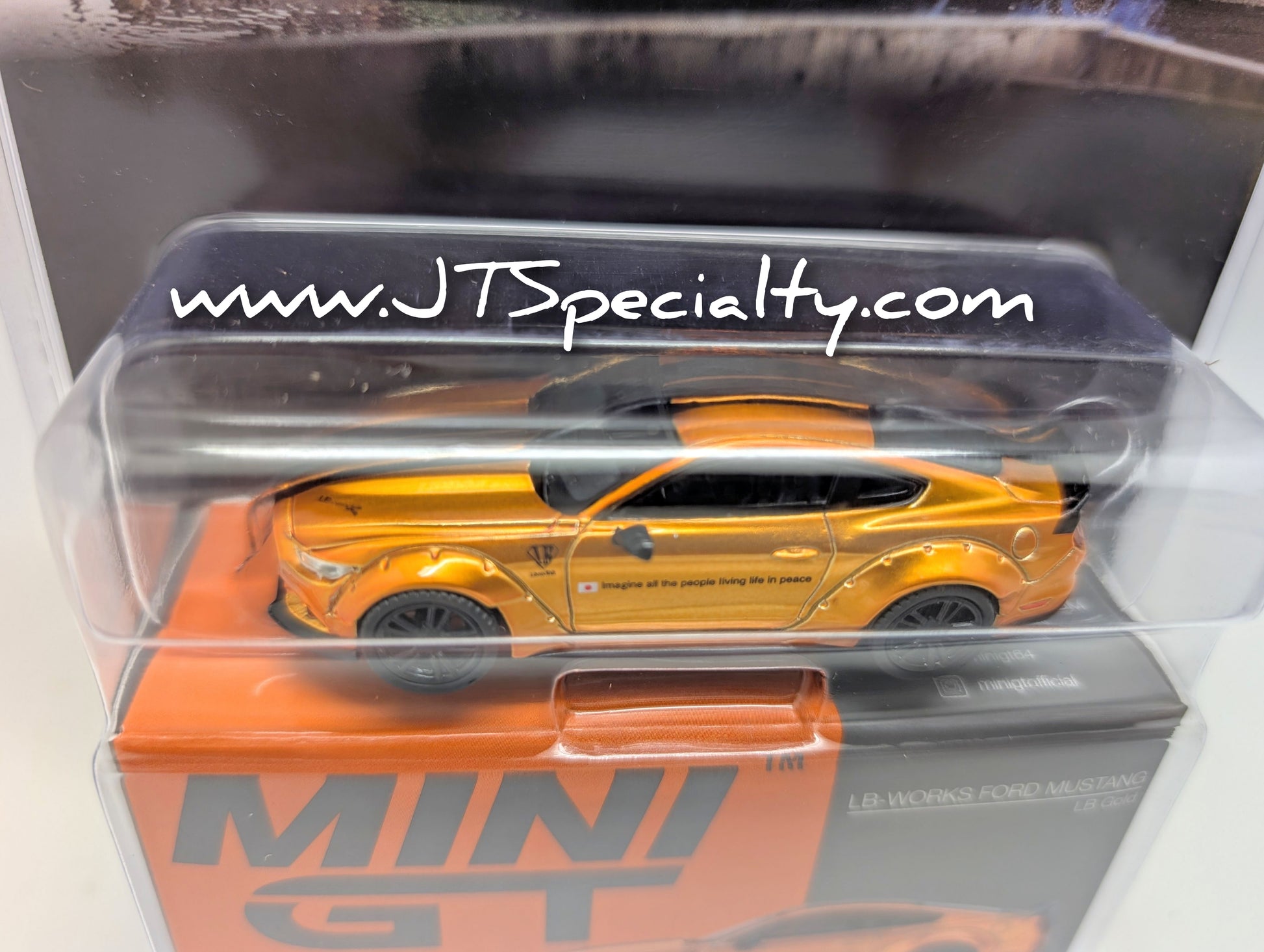 Mini GT 0847 LB-Works Ford Mustang LB Gold. New in package, 1:64 scale.