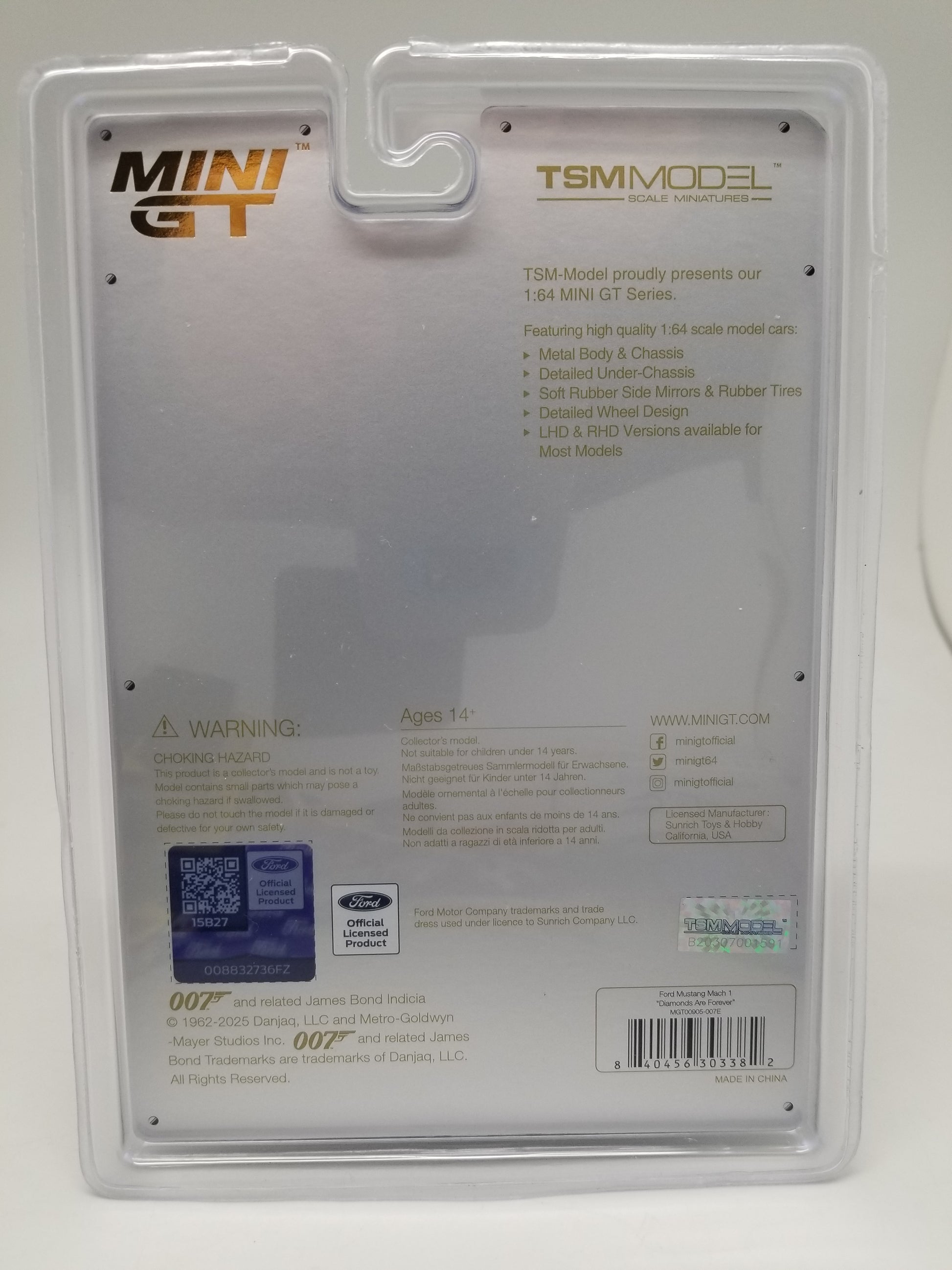 Mini GT 0905 007 Ford Mustang Mach 1 - James Bond - Diamonds Are Forever. New in package, 1:64 scale.