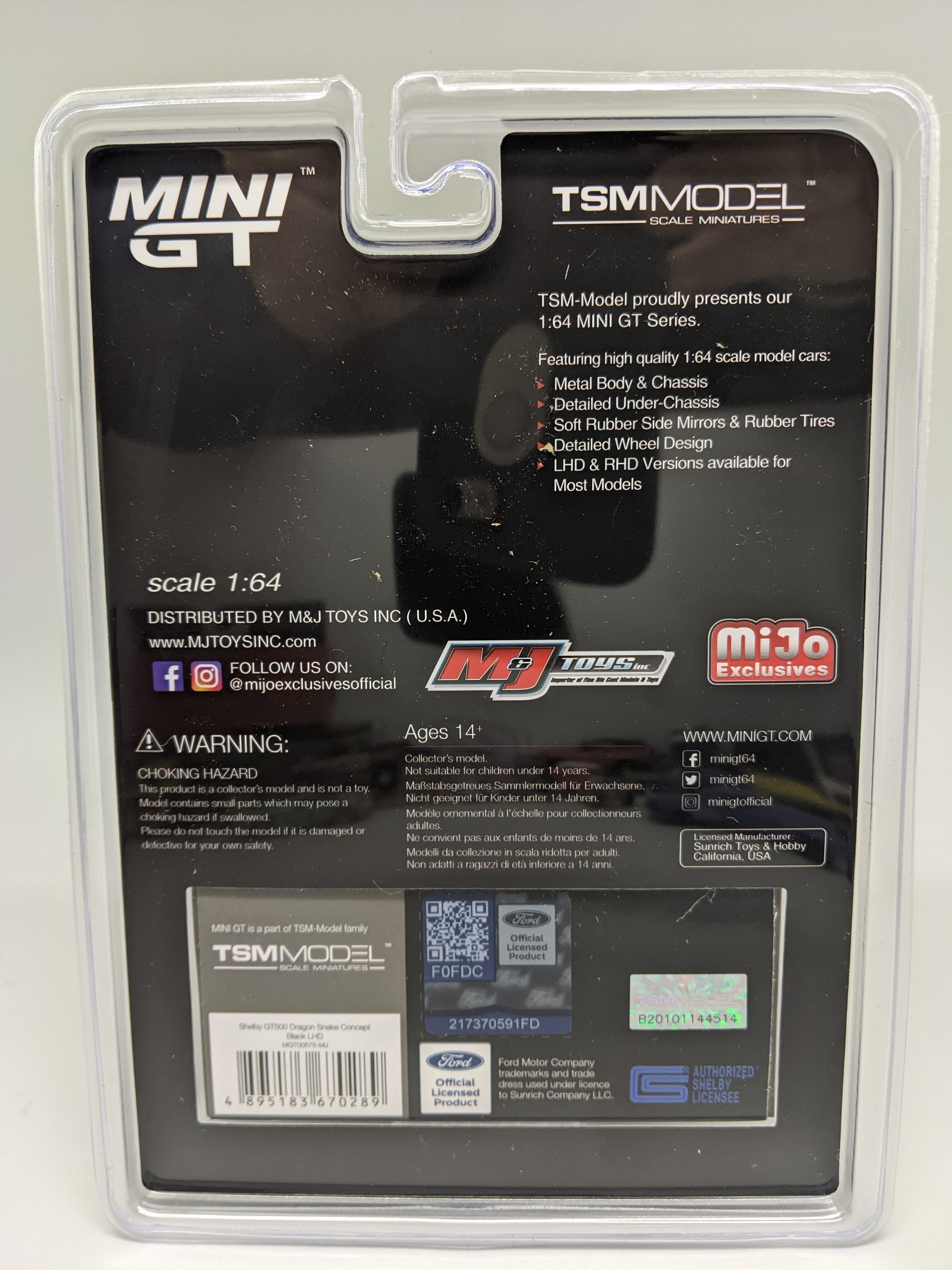 Mini GT 0575 Shelby GT500 Dragon Snake Concept - Black new in package, 1:64 scale. MiJo Exclusive.