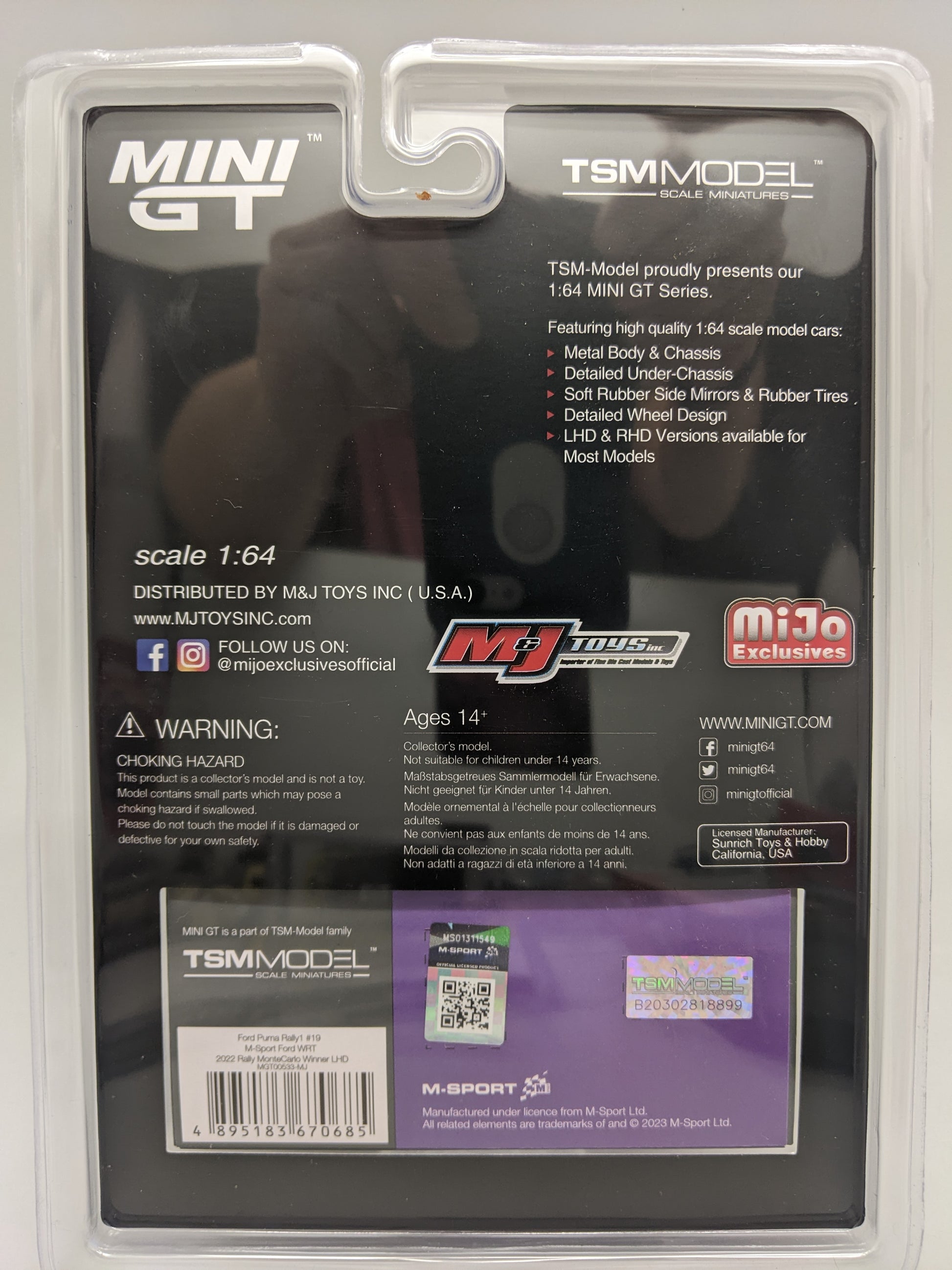MiniGT- Ford Puma Rally1 #19 - M-Sport Ford WRT 2022 Rally MonteCarlo Winner new in package, 1:64 scale.